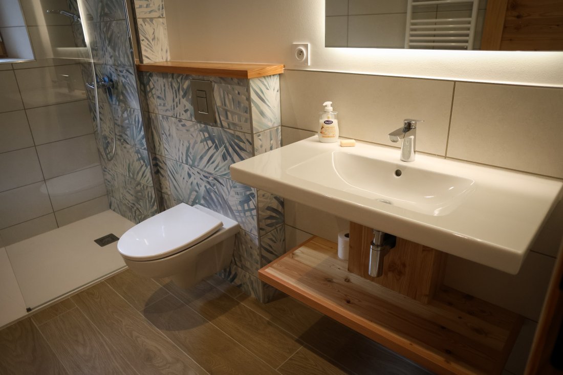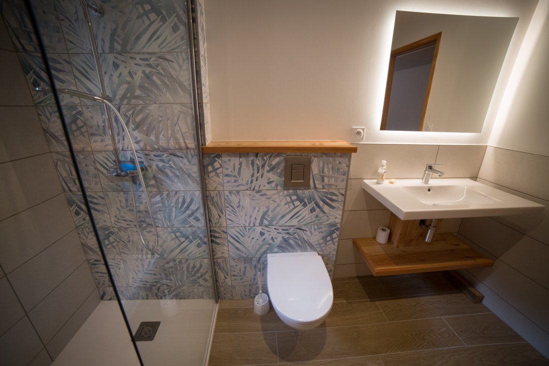 une élégante chambre double dotée d’un lit queensize et d’une salle de bain privative, offrant tout le confort et l’intimité nécessaires pour un séjour haut de gamme à La Tanière de l’Izoard.