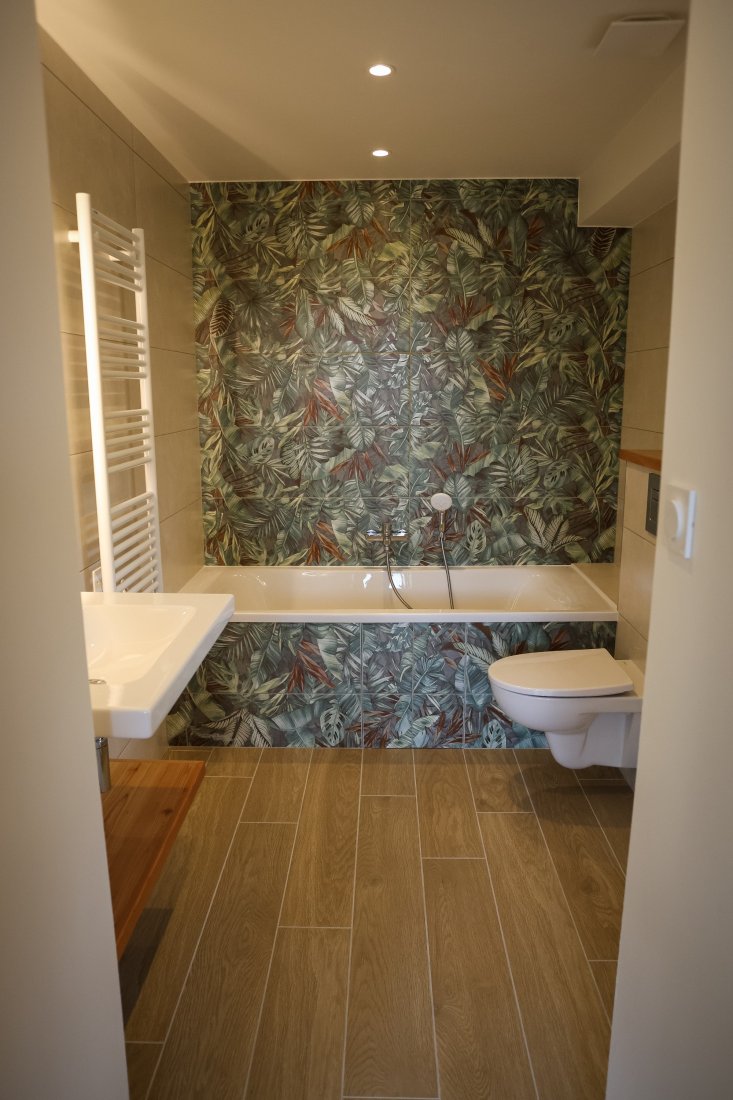 Grâce à sa conception soignée, la chambre numéro trois s’adresse particulièrement aux couples ou aux voyageurs souhaitant s’offrir une parenthèse de confort. Le balcon orienté plein Sud prolonge l’espace intérieur et offre un cadre privilégié pour savourer le paysage environnant ou prendre un petit-déjeuner en toute tranquillité. La salle de bain privative, équipée d’une baignoire, invite à des moments de relaxation après une journée passée à explorer les richesses locales. La literie haut de gamme garantit un sommeil réparateur, essentiel pour profiter pleinement de son séjour.